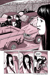 The course, now in its third year, offers 20 students the chance to write and produce a graphic novel from scratch over two (fast-paced) semesters. We split them into a team of writers, thumbnailers and artists, then switch some of them into scanning/colouring and eventually layout in indesign. You can check out previous years’ graphic novels here. This year’s book weighs in at 160 pages and relies on extensive picture reference and documentation passed on to us from the original reporter, Meredith May, at the Chronicle. It’s a big evolution from Pika Don, the previous graphic novel, which only featured single tone spot colour. As you can see from the sample page below, this year we went for 3-tone gradations of colour to fill out the line work more. More soon.